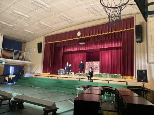 今日は、学芸会前、最後の長い時間の講堂練習です。明日は、15分ずつしか練習できません。舞台の立つ位置や話す時の体の向きなど、予行の時に感じた課題を克服するために、子どもたちは、たくさん練習してきました。その成果は、発揮できたでしょうか。今日は、そんな146期の姿を、1年生のみんなが見にきてくれました。
