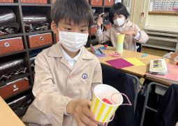 図工は新1年生へのプレゼント作りです。今回のコンセプトは「もらった瞬間遊べるプレゼント」です。