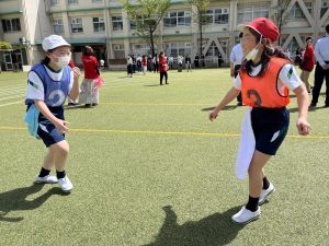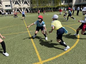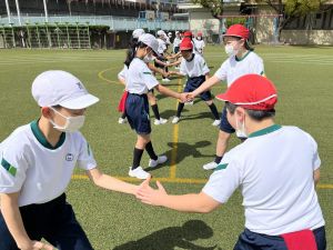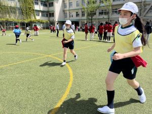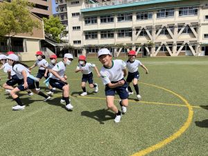 スポーツデーの練習という名目ではありますが、とにかく楽しむことに全力です。ボールを使ったり、50メートル全力疾走したり、鬼ごっこや尻尾とりで俊敏性を鍛えたり、ミニゲームでたくさん汗をかきました。