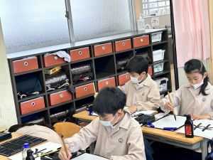 1回目に練習した横の線や縦の線、はらいなどいろいろな線が隠れています。鉛筆であれば、上手に書ける人も筆独特の柔らかさや動かし方に苦戦している様子。ですが、何度か練習すると、とても綺麗な線で「林」が書かれていました。これからも練習していきますので、どれくらいきれいに書けるようになるのか楽しみです!!