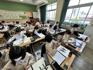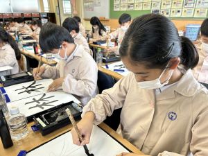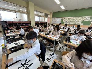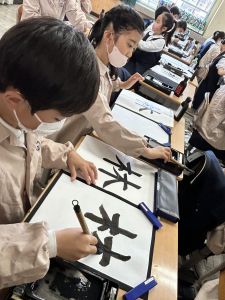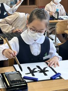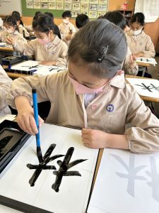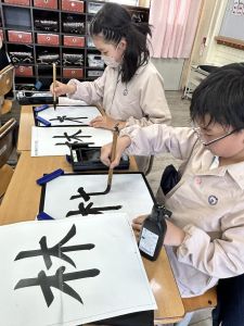 1回目に練習した横の線や縦の線、はらいなどいろいろな線が隠れています。鉛筆であれば、上手に書ける人も筆独特の柔らかさや動かし方に苦戦している様子。ですが、何度か練習すると、とても綺麗な線で「林」が書かれていました。これからも練習していきますので、どれくらいきれいに書けるようになるのか楽しみです!!