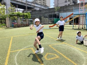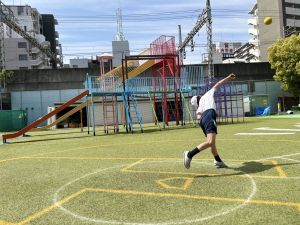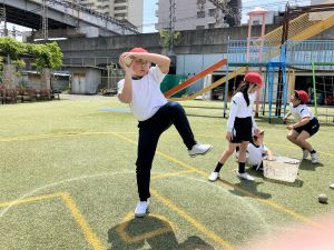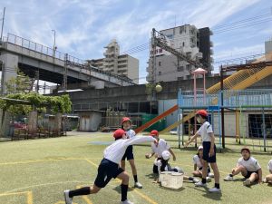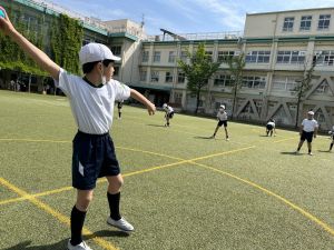 ドッジボールが大好きな145期の子どもたちですが、野球ボールでキャッチボールをすることも大好きです。休み時間になると、クラスを超えて、キャッチボールをしている子どもたちもたくさんいます。