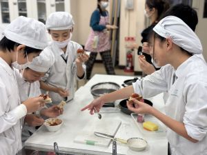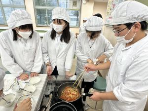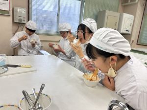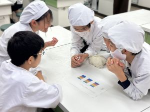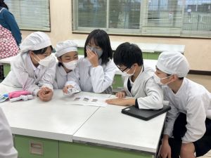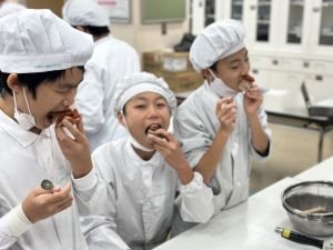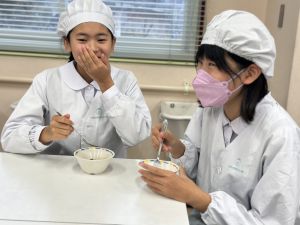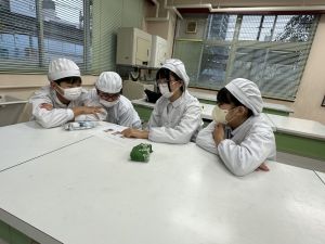 明日、3組が試作品タイムです。マスクと手拭きタオルとふきんの用意をお願いします。