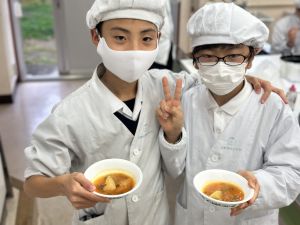 子どもたちの提案の一つ目は「トマトジャム」甘くて美味しい。二つ目は「パスタソース」自分たちでパスタも茹でました。そして3つ目は「野菜スープ」これも大島さんの野菜がたくさん使われていて絶品。どれも、美味しいのですが、商品にできるのは1つだけです。味はもちろん、利益や人件費、容器代、原材料、デザイン代などのコスト、大島さんの思いなどを想像しながら、決定していきます。さあ、1組は何に決まるのか、子どもたちの意見が楽しみです。