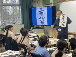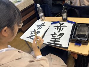 今日は、今年初の書道で、書き初めでした。テーマは「希望」です。
