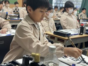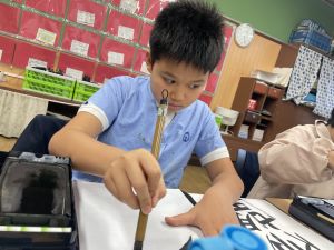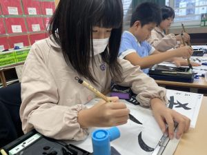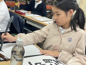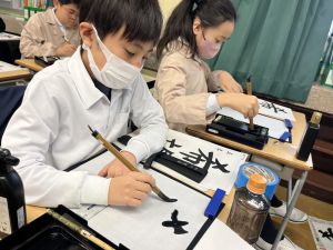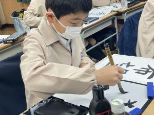 ※本日書道セットやスモッグの忘れ物が多く見られました。その際、お友達に借りることは禁止しているのですが、今日はあまりの多さにそうせざるをえない状況となってしまいました。そうしますと、ただでさえ汚れやすい習字セットですので、汚れたり壊したりのトラブルの元となってしまいます。今回は時間割に記載しておりましたし、以前から持ってくるように声掛けもしておりましたので、今日忘れたご家庭は必ず次回までに持ってくるようにしてください。