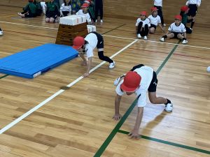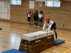 体育では跳び箱をつかった運動遊びをしました。