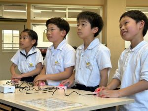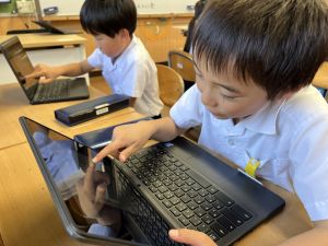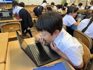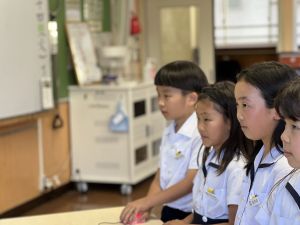 問題がうつされるテレビ画面をクッと,見つめて取り組む姿がほほえましかったです。