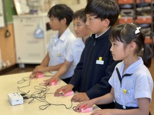 総合的な学習の時間では,校内で地震が起こった時とき,危険なもの,安全なものを予想しました。