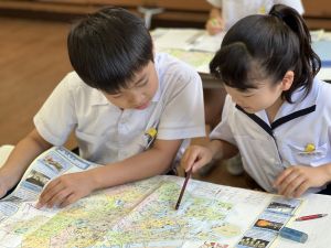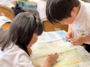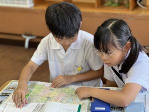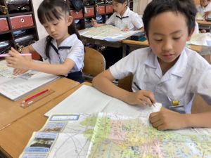 社会科の学習では,「川がいっぱい大阪市」をテーマに,大阪市にある川を学習しました。子どもたちからは、「大阪市だけでこんなに川があるの?」「この川はすごく大きいね」「そもそも川の水は、どこから来ているんだろう」などたくさんの発見をしてくれていました。