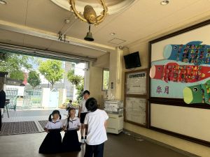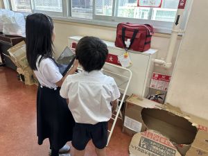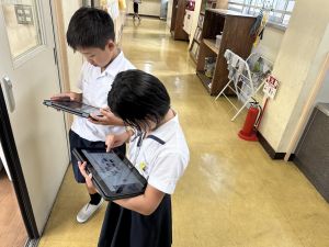 総合的な学習の時間では,地震が起こったら危険な場所,安全な備えについてトリオに伝えるため,シュミレーションを行いました。今朝も石川県で地震が起こり,緊急地震速報に驚き,目を覚まされた方もいらっしゃたのではないでしょうか。いつ起こるか分からない災害に対して,しっかりと備えを行っていきたいと思います。「自分の命,みんなの命を守るため,進め!147防災探検隊!」