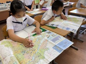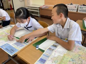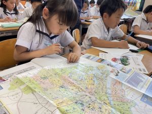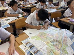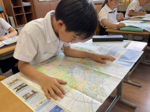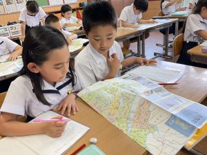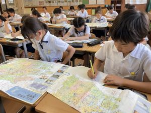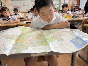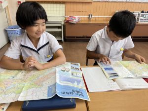 社会科の学習では,「川がいっぱい大阪市」をテーマに,大阪市にある川を学習しました。子どもたちからは、「大阪市だけでこんなに川があるの?」「この川はすごく大きいね」「そもそも川の水は、どこから来ているんだろう」などたくさんの発見をしてくれていました。