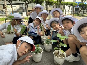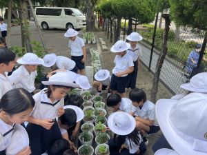 理科の学習では,「植物の観察」も行っています。たねからどのように成長をしていくのか,子葉が出てきて,くきの色や太さが変わってきたり,草たけがのびてきたり等,成長過程を楽しんで観察する姿ありました。