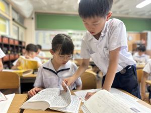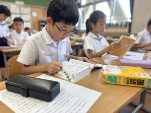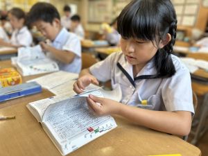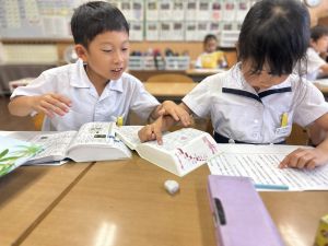 国語の学習では,「辞書引き」も行っています。意味を知らない言葉を調べたり,意味は知っているけれども改めて調べてみたり,調べる言葉はそれぞれです。調べた言葉には,付箋をはって,メキメキ語彙力をあげていきましょうね。
