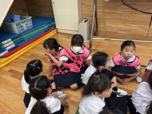 まず,トリオのメンバーで集まって,村口先生から「ふしんしゃってどんな人?」「学校での先生や保護者の方の見分け方」などの話がありました。