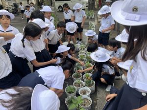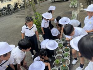また,モンシロチョウやアゲハチョウのたまご,幼虫を休み時間などに観察する姿もあります。上手く成長して,成虫になってくれるといいですね。