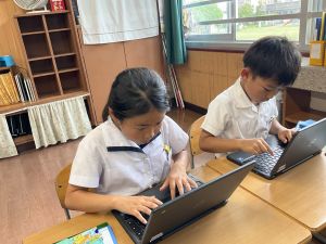 クロームブックの操作も,大分と慣れてきた様子が伺えます。今後も,少しの時間を活用しながら,タイピング等上達してほいいなあと思います。