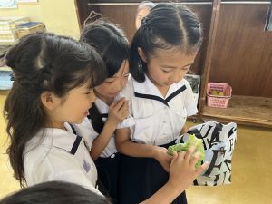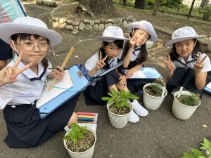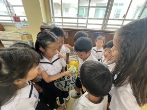 また,モンシロチョウやアゲハチョウのたまご,幼虫を休み時間などに観察する姿もあります。上手く成長して,成虫になってくれるといいですね。