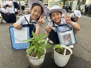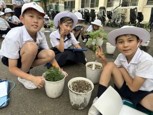 理科の学習では,「植物の観察」も行っています。たねからどのように成長をしていくのか,子葉が出てきて,くきの色や太さが変わってきたり,草たけがのびてきたり等,成長過程を楽しんで観察する姿ありました。
