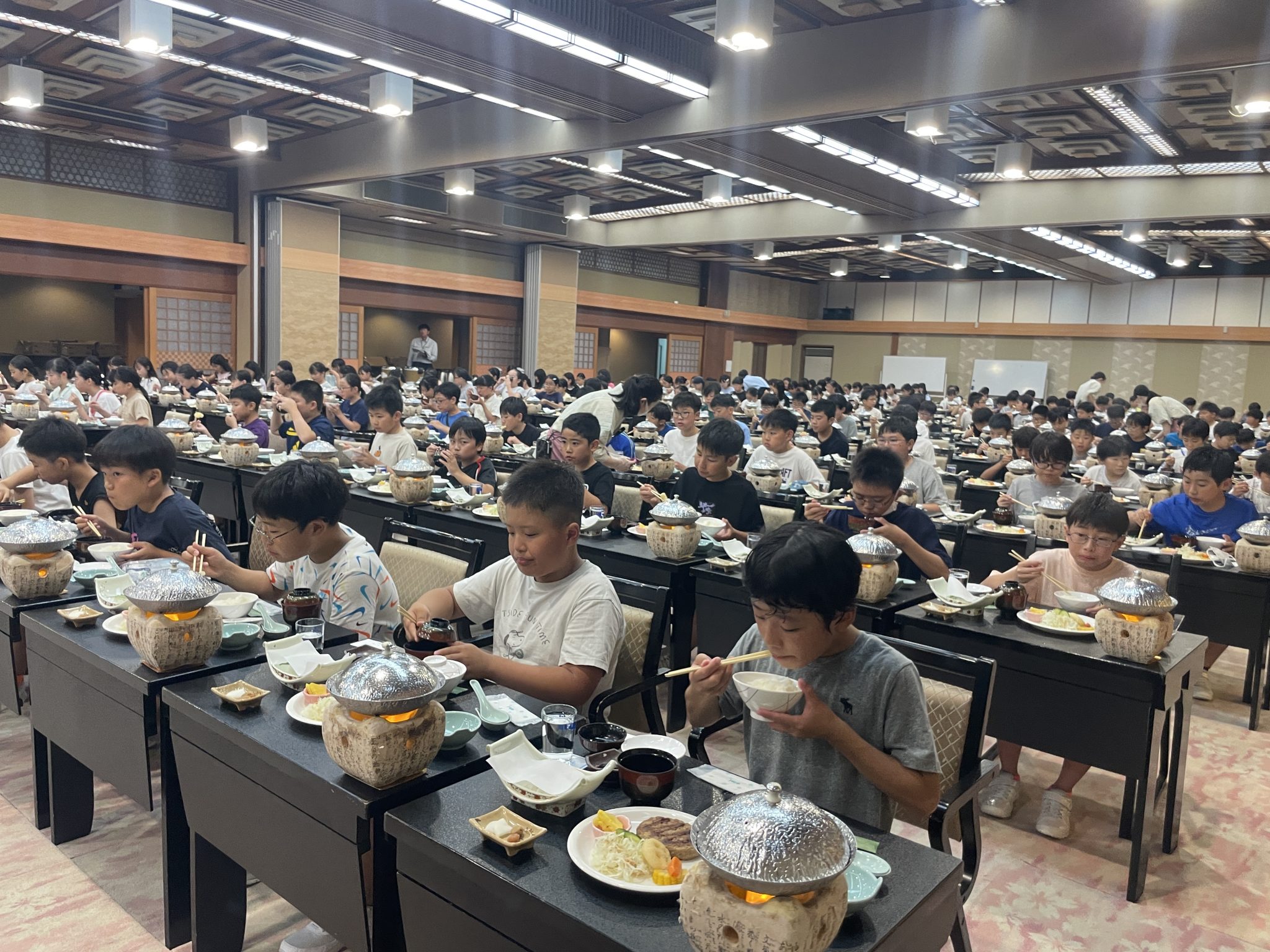練習後は、「お腹すいたー」という声が響いていました。下は、食事のようすの雰囲気をお伝えする写真です。