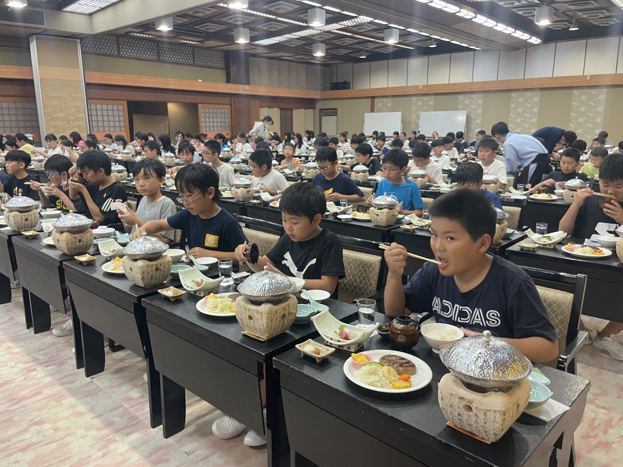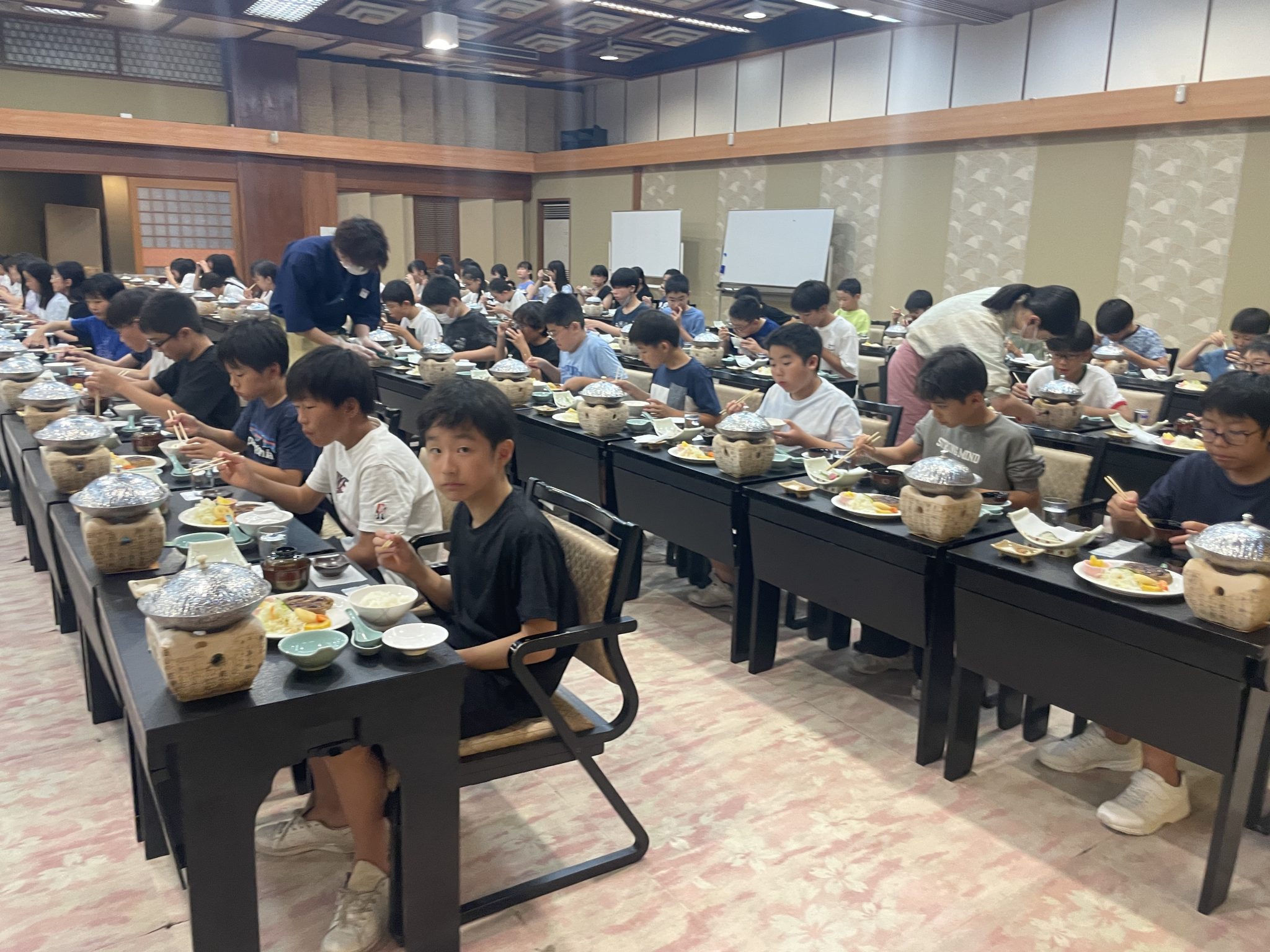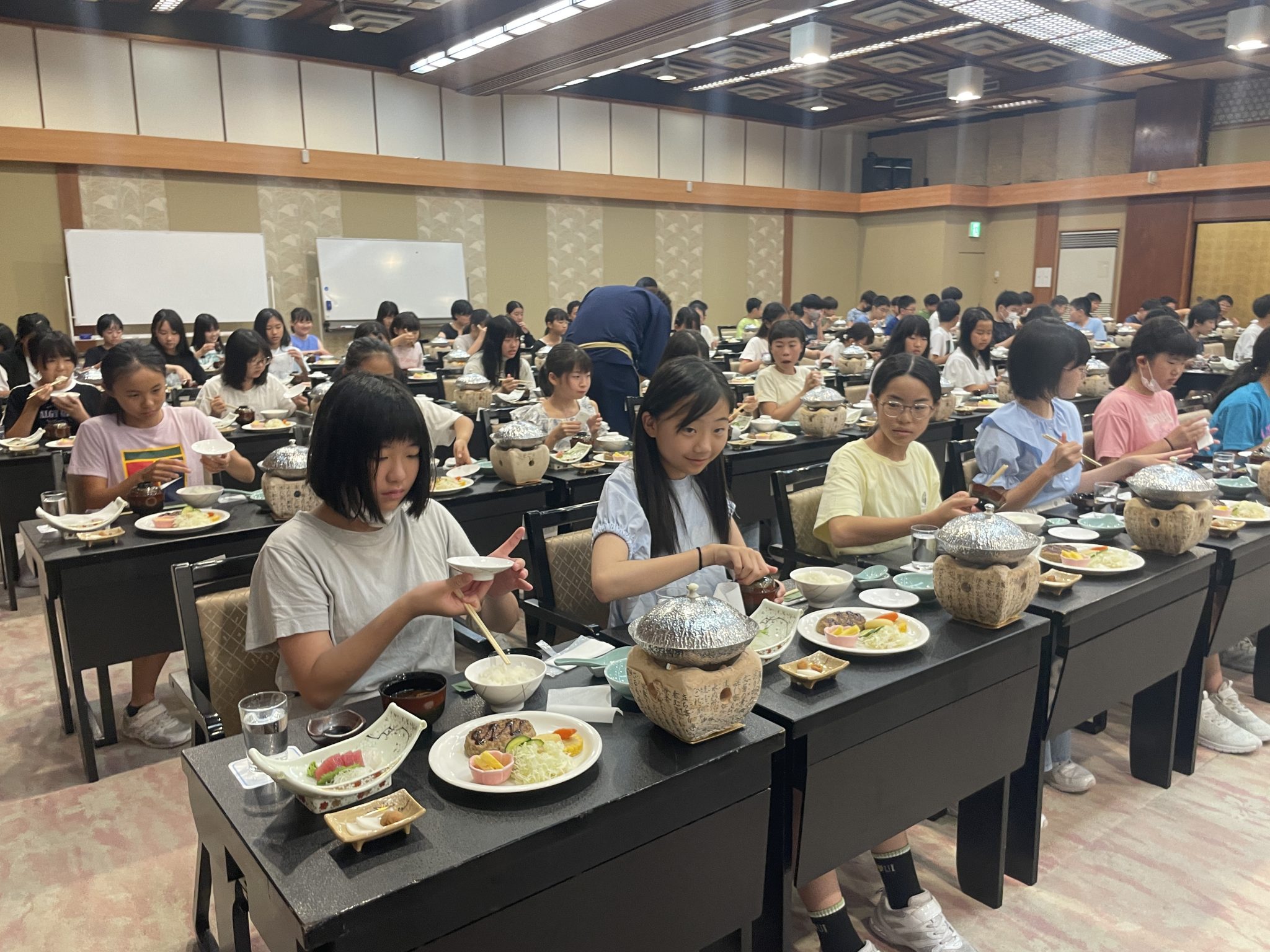 練習後は、「お腹すいたー」という声が響いていました。下は、食事のようすの雰囲気をお伝えする写真です。
