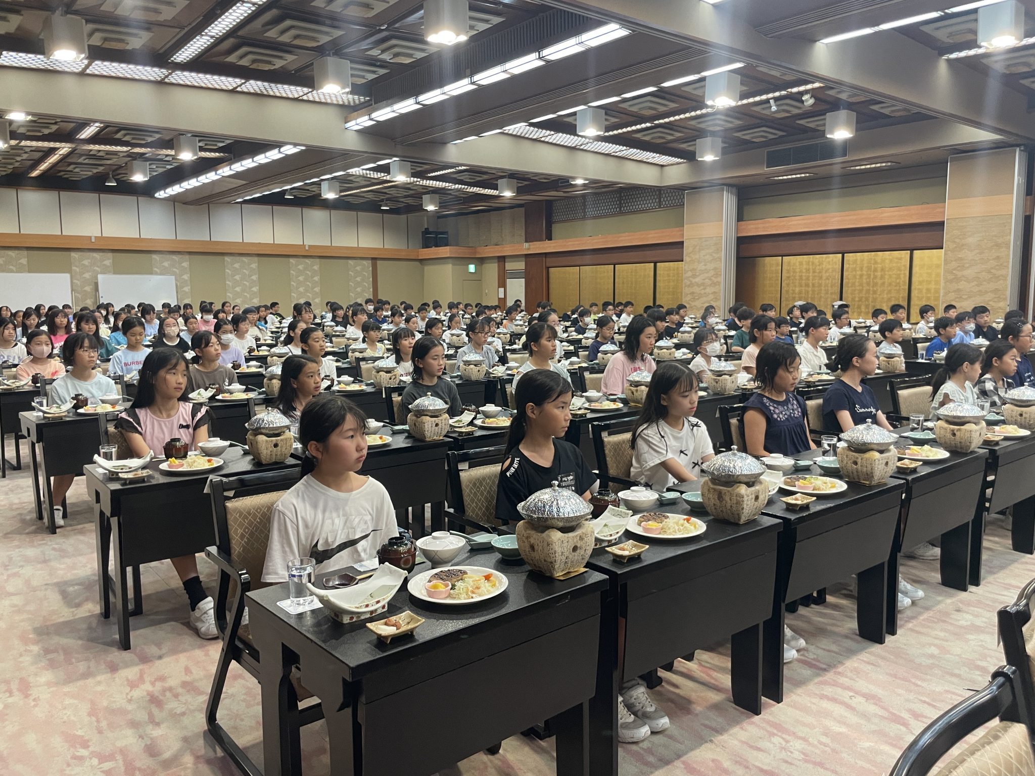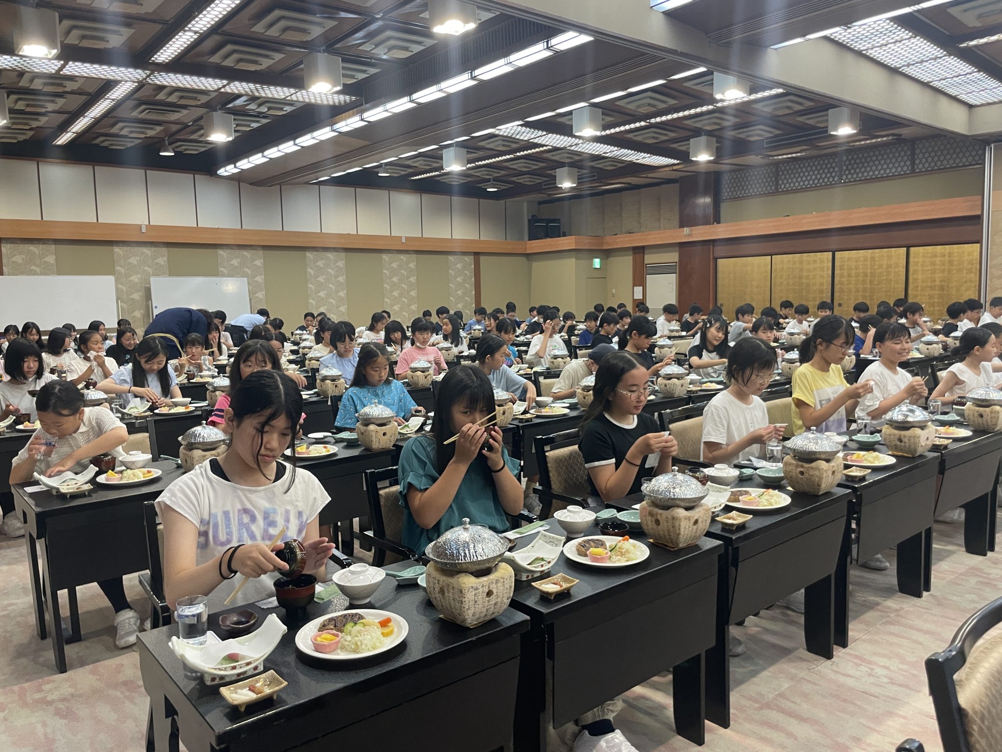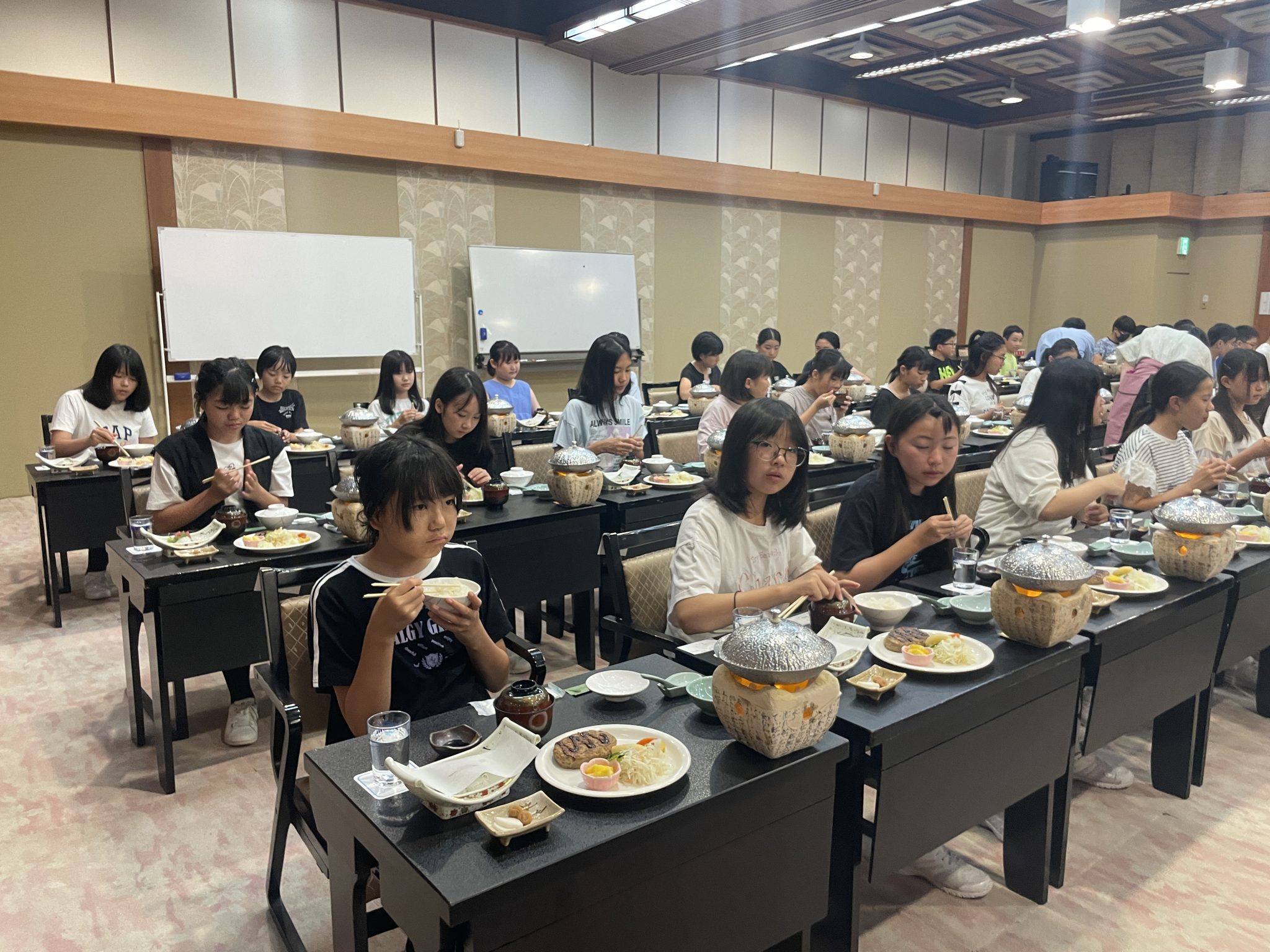 練習後は、「お腹すいたー」という声が響いていました。下は、食事のようすの雰囲気をお伝えする写真です。
