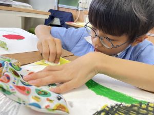 図工では、148ガーデンの野菜を大きく、そして、いくつかの技を使いながら描いています。