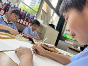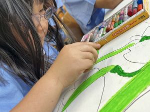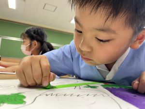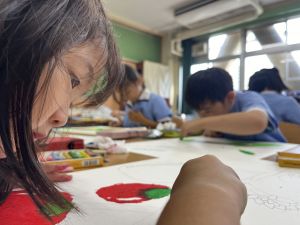 図工では、148ガーデンの野菜を大きく、そして、いくつかの技を使いながら描いています。