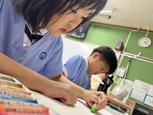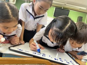 1組では、実習の先生が新出漢字を教えてくれました。2・3組さんも待ち遠しいですね。