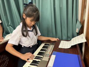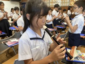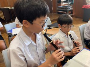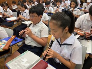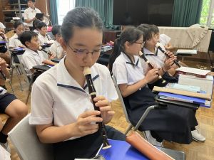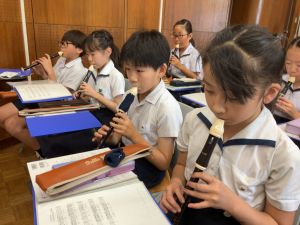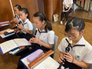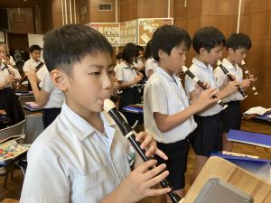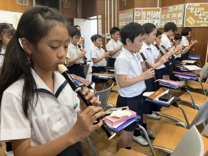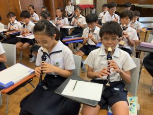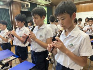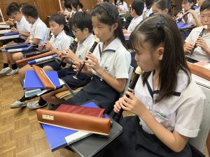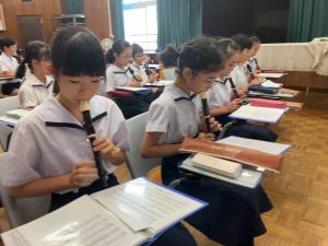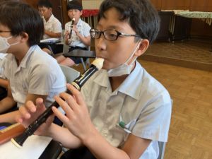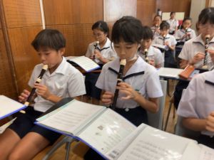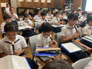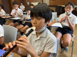 夏休みに練習したリコーダーの課題を確認、次回以降テストをするようです。