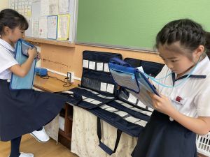 明日の土曜授業で使用します。お子様が常備されている(ランドセルに入れている)と思いますが、改めてご確認のほど、よろしくお願いします。