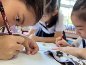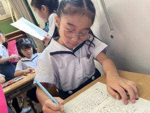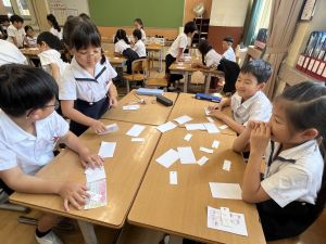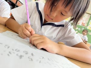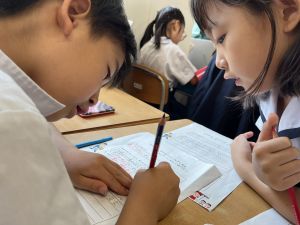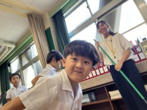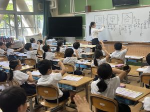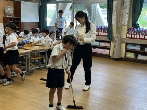新出漢字の学習に、給食の配膳におかわり、掃除や挨拶まで。何でも実習生の先生と一緒です♪