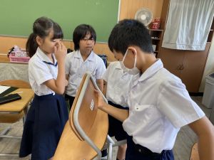 本日の理科は、体を動かす時の筋肉の様子を調べました。