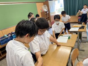 本日の理科は、体を動かす時の筋肉の様子を調べました。