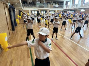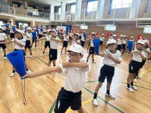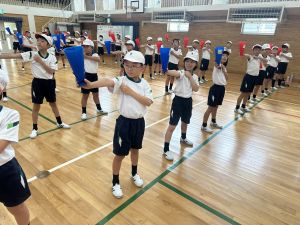体育の学習では,ダンスに向けて日々練習中です! メガホンを使って踊る曲です。カッコよさと激しさを合わせたダンスになっています。今日はカッコよさを追及するために,細かい動きに注力していきました。