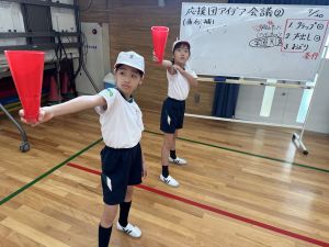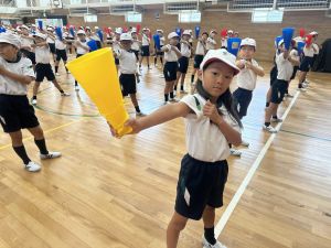 メガホンをもつ手はどのようにもったらいいかな? 目線はどこがいい? 自分なりに課題を見つけ,挑戦し続けてくれている様子,とても素敵です。課題も十人十色です。個人の課題を見つけて本番に向けてさらに磨きをかけていってほしいと思います!