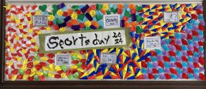 子どもたちが一人ひとり折った折り紙は、各学年の団体演技を表現するものへ、と。