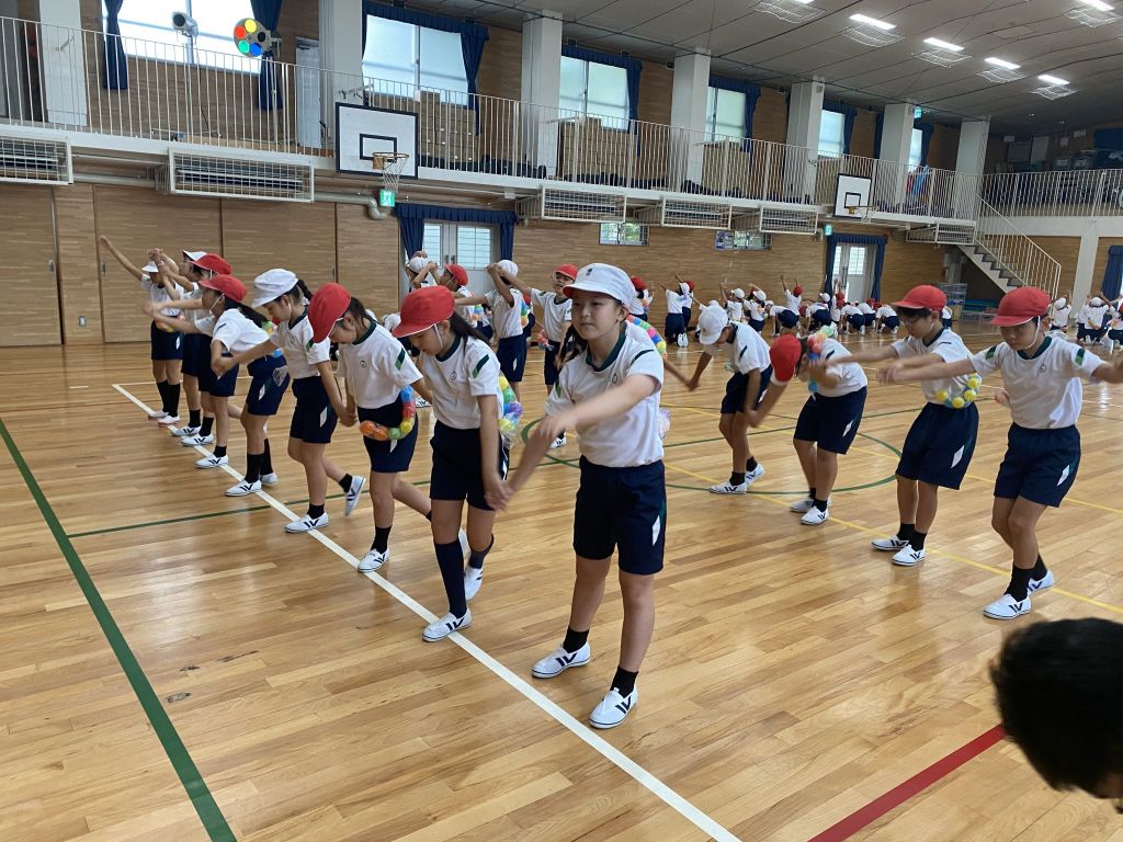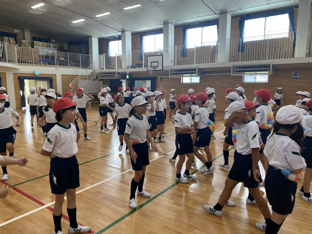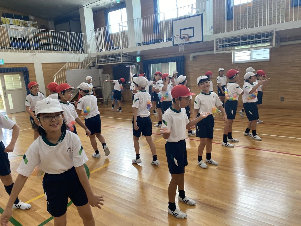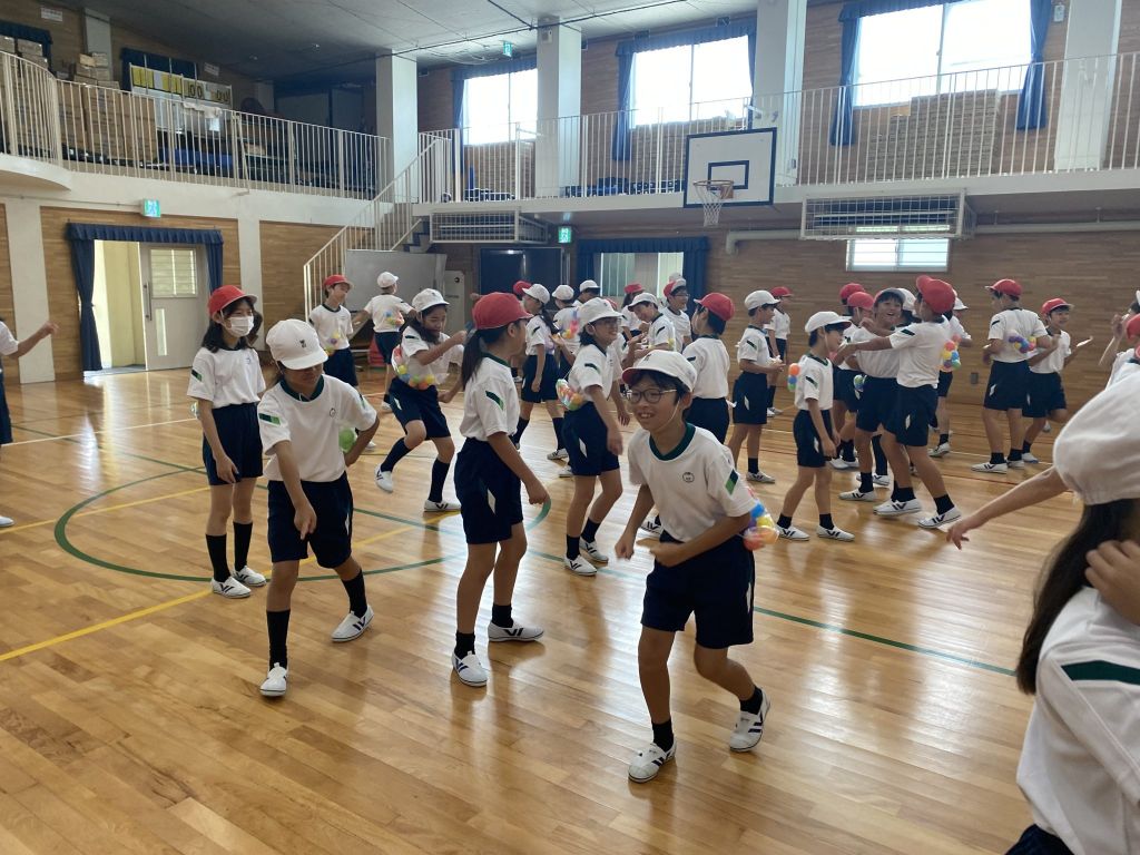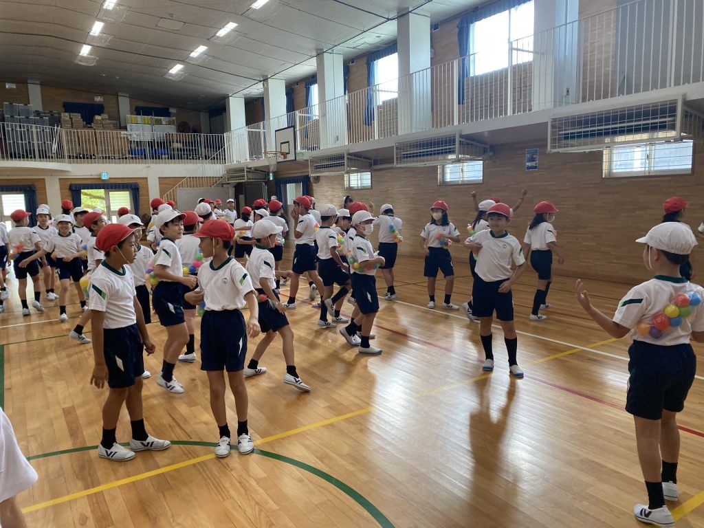 子どもたちが一人ひとり折った折り紙は、各学年の団体演技を表現するものへ、と。