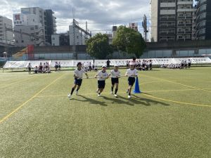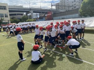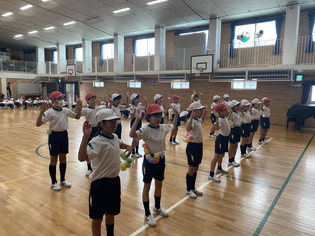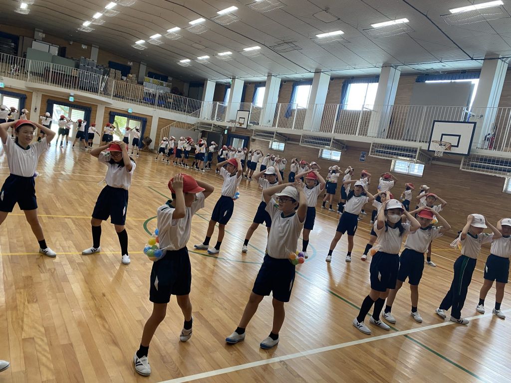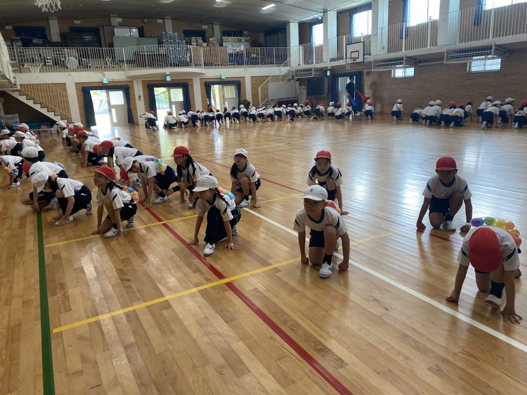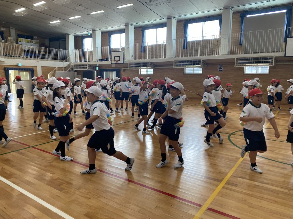 子どもたちが一人ひとり折った折り紙は、各学年の団体演技を表現するものへ、と。