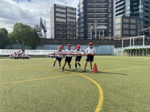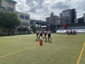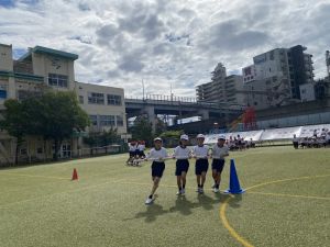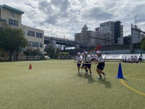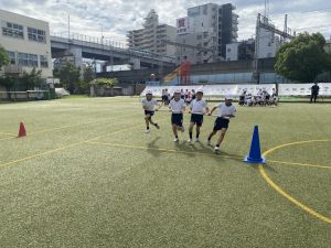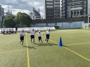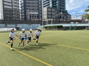 戻ってきたら、棒を横でそろえて飛び越えたりしゃがんだりして、苦戦していました。