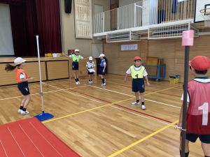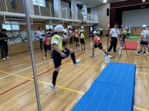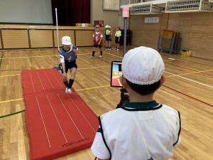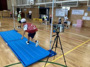 今、体育科の学習で、「高跳び」の学習に取り組んでいます。