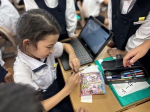社会の授業では,先日の商店街を振り返りながら学習を進めていきました。スーパーと同じでいろいろ工夫を見つけてくれていましたが.具体的にどんな工夫があったかな?なんで,そんな工夫があるのかな? とたくさん考えてくれていました。