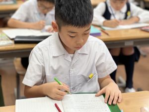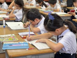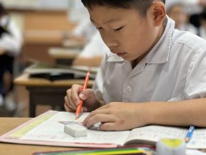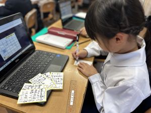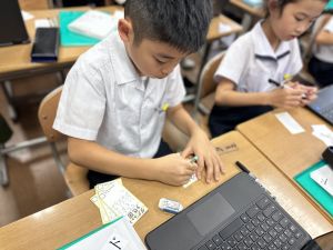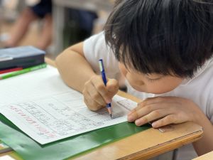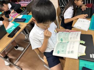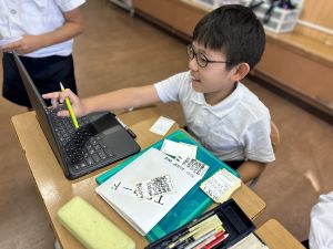 社会の授業では,先日の商店街を振り返りながら学習を進めていきました。スーパーと同じでいろいろ工夫を見つけてくれていましたが.具体的にどんな工夫があったかな?なんで,そんな工夫があるのかな? とたくさん考えてくれていました。