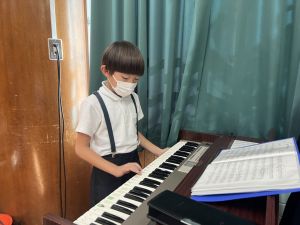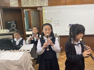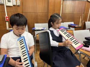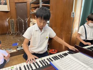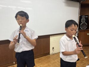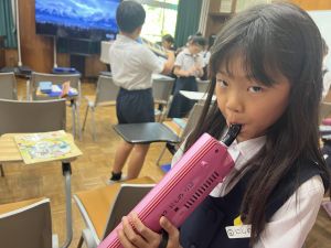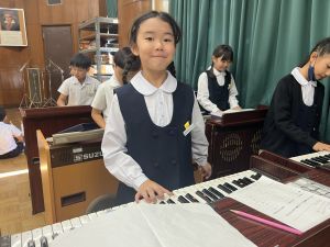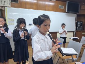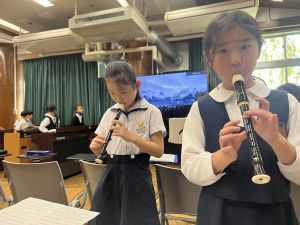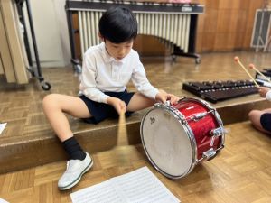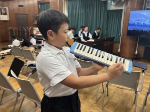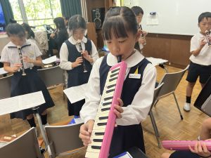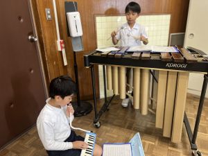 昨日,講堂で練習をしてみて,「音楽室より音が響くから合わせるのが大変」「みんなの音をよく聞かないといけない」等,思ったようです!