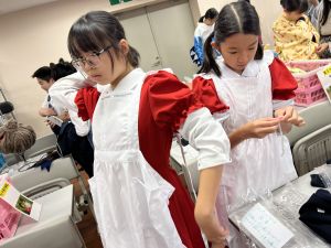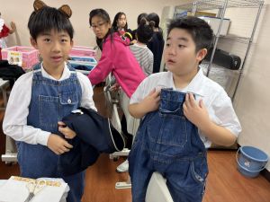 本日学芸会の衣装合わせを行い、衣装を着て通し練習を行いました。今回の劇は普段着なれない衣装を着ますので、ご家庭で着方の練習や裾直しなどしていただけると幸いです。着物系は一度お洗濯してもらった方がよいかと思います。