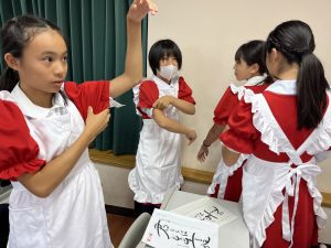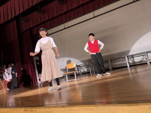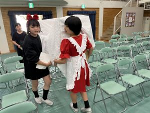 本日学芸会の衣装合わせを行い、衣装を着て通し練習を行いました。今回の劇は普段着なれない衣装を着ますので、ご家庭で着方の練習や裾直しなどしていただけると幸いです。着物系は一度お洗濯してもらった方がよいかと思います。