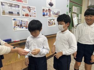 お知らせ ・学芸会の衣装を持って帰っているクラスがあります。また、持っていないお子さんに関しては、紙袋などを持参するようにお声かけください。 ・臨時入校証をまだお持ちの方は、ご返却お願いします。 ・社会ノートを本日忘れているお子さんがいます。お声かけお願いします。 |