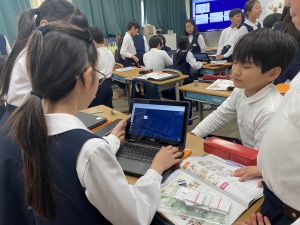 外国語では、学校紹介に向けてどこを紹介するかを決めているクラス