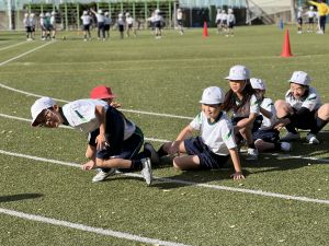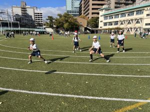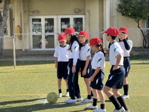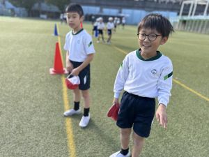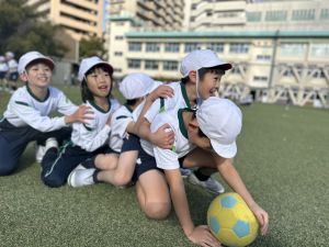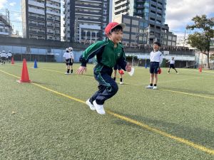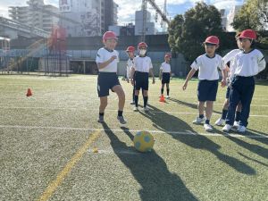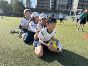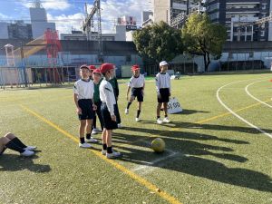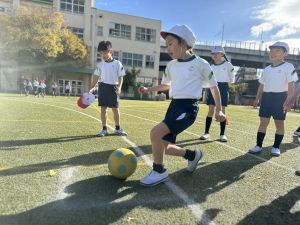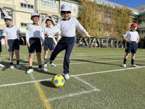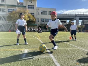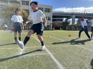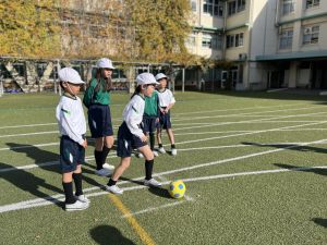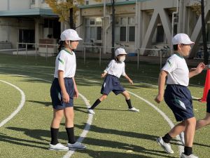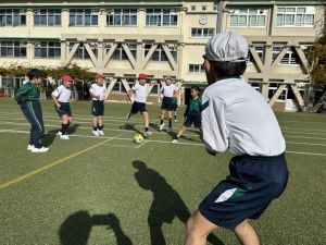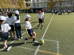 久しぶりの学年体育です。 学年で体育をすると,1クラスで使うことのできるコートの広さが限られてきます。
