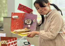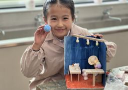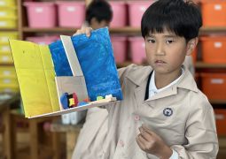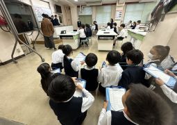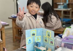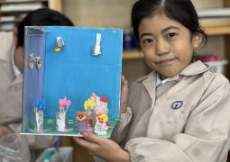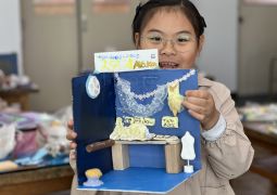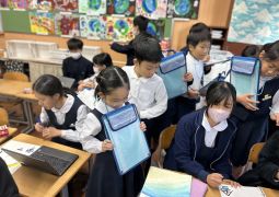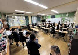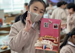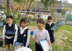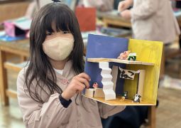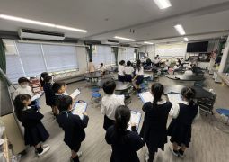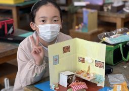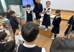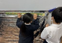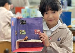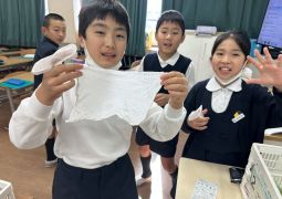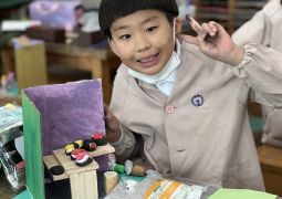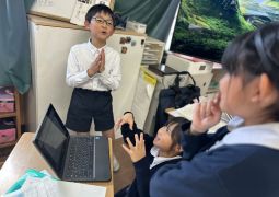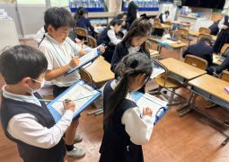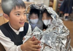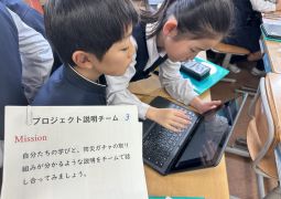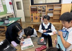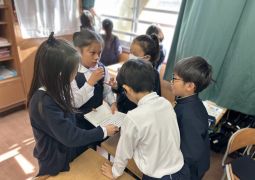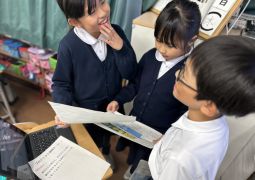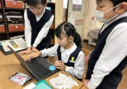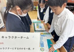 総合の学習では,アイデアシートをもとにグループ話し合い、準備を進めました。絵を描くことが好きな子どもたちが集まって、キャラクターや文字のデザインを検討しています。備えに関心のある子どもたちが集まって、販売するものを実演しながら説明書の内容を検討しています。他にもアンケートの内容を考えたり、キャッチコピーを考えたり。みんなで得意や好きを活かしながら、プロジェクトを進めています。この姿はまさに学校教育目標でもある「個が生きる」そのものです。たくさんのアイデアの中から、よりよいものを選んだり、合わせて新しいデザインにするには、多少の摩擦は生まれます。しかし、147の子どもたちはそれも学びとして捉え、みんな前向きにいい表情で取り組んでいます。